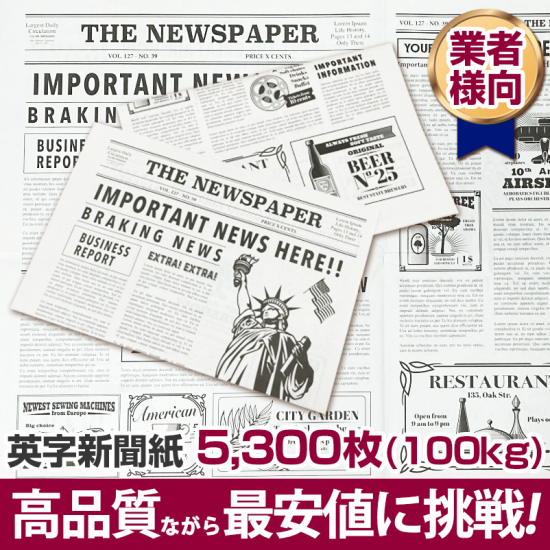 本物の新聞用紙に印刷された英字新聞風包装紙。